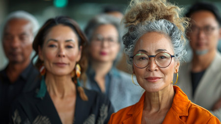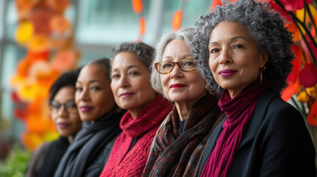 Five successful senior businesswomen standing together celebrating international women's day. Ai generated
