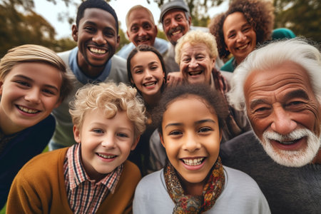 A Happy and Diverse Group of People of Various Ages and Races. Concept Family Gathering, Multicultural Portraits, Smiling Faces, Inter-generational Bonding, Joyful Moments