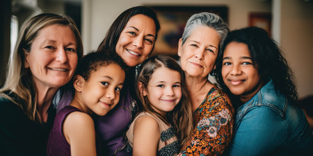Multiethnic female family generations portrait. Generative AI