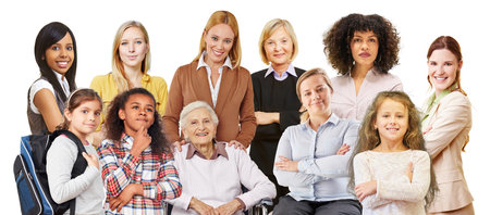 Women of many generations as a portrait collage as a society and empowerment concept