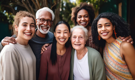Happy group of diverse people, friends, family together.Generative AI