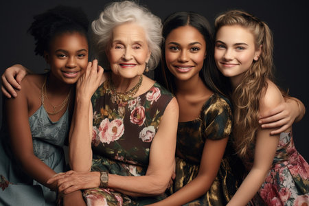An endearing portrait showing three generations of females united, depicting family bonds and joyful togetherness. A.I.