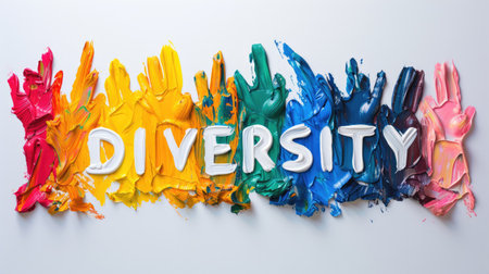 Generative AI, Word Diversity drawn with colorful acrylic paint on white background