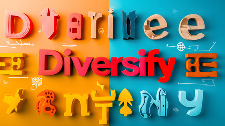 Diversification of investment or asset allocation or portfolio management on stock and fund make investments more efficient and manage risks better, word “Diversify†on background