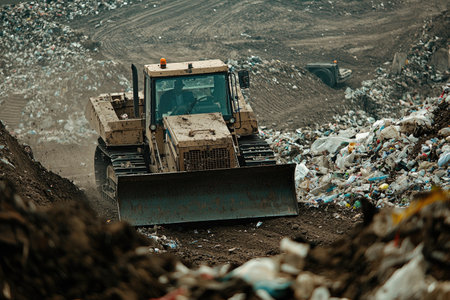 Bulldozer Maneuvering Through Massive Trash Mounds