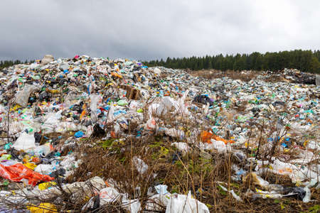 Filthy messy landfill site. Pollution, contamination and environmental conservation concept.