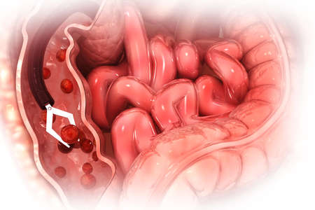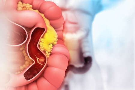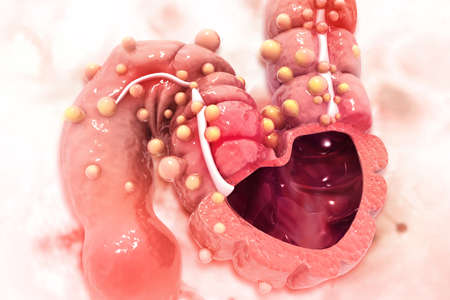 Human colon, Colon anatomy, cross section, colon disease, scientific background, 3d illustration
