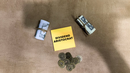 Concept of Dividend Aristrocrat write on sticky notes isolated on Wooden Table.