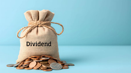 coin sack with word “Dividend†on blue background, return on investment in stock or fund, yield from dividend stock