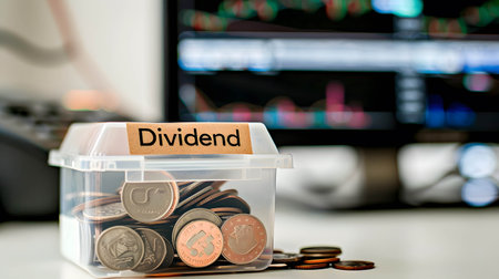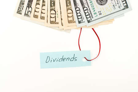 a plastic box with written word “Dividendâ€, diversify investments or investing part of money in dividend stock concept