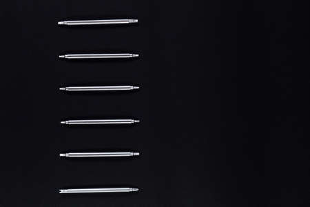 A collection of sleek black writing instruments lies symmetrically on a warm orange surface, creating a striking visual contrast that inspires creativity in an office or workspace setting.