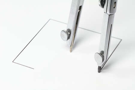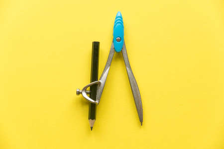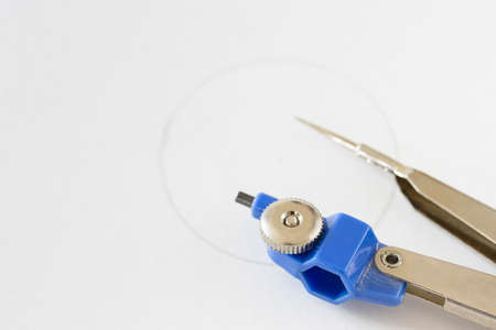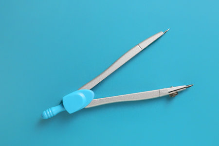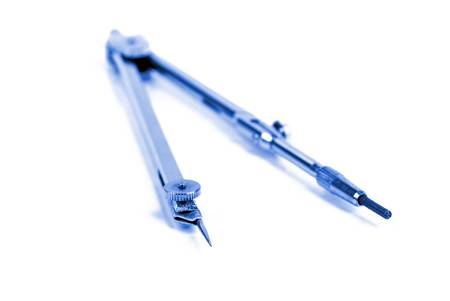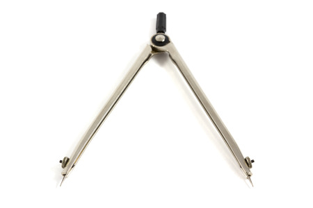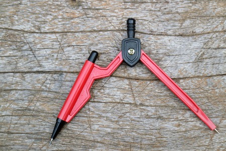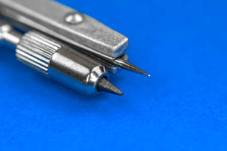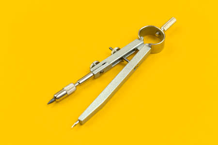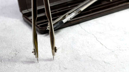 close-up of drawing tool including metal drawing divider isolated on wooden background