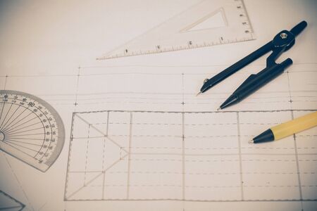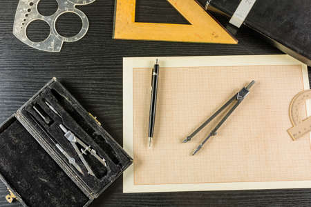 Technical drawing on graph paper at school, college or in the design office - useful equipment.