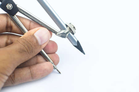 Person holding a compass attached to a silver color pencil and trying to make perfect a circle