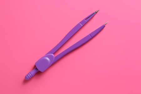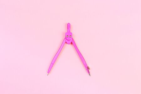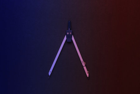 Compass for drawing in neon light. Top view. Stationery. Engineering