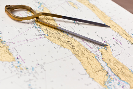 Brass reduction compass or proportional scale divider. Geometry tool used to scale up or down designs and in navigation to transfer distance on charts