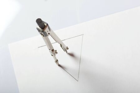 A figure drawn by a compass on white paper. Triangle, compass in space.