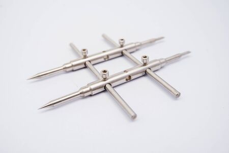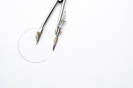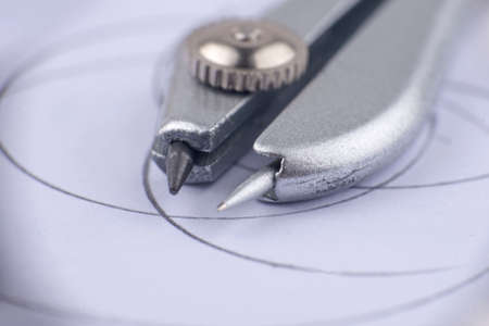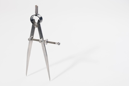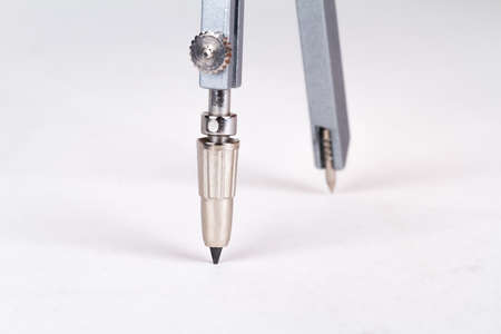 Professional compass, metallic precision tool used by draftsman, architect, engineer or students isolated on white tome make circles