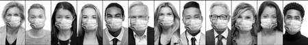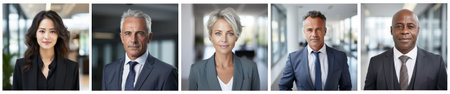 Collage of portraits of an ethnically diverse and mixed age group of focused business professionals