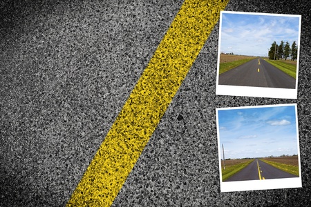 Asphalt highway with yellow line detail on road background