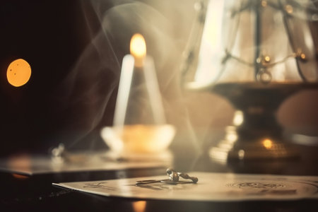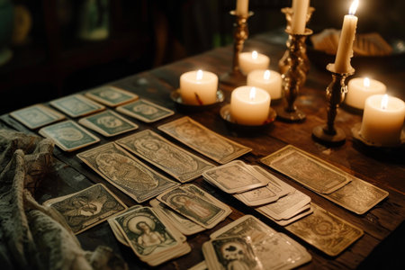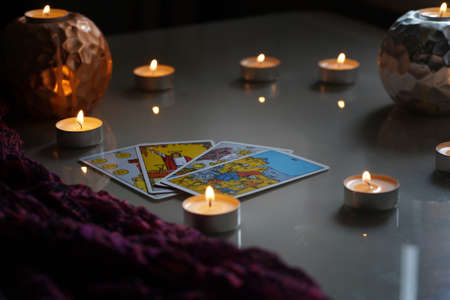Defocused mystic ritual with tarot cards, and candles.