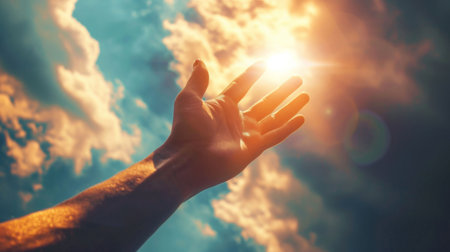 A person reaching up to the sky with their hand, AI
