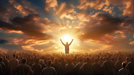 Jesus Christ in Heaven with rays of light religion concept