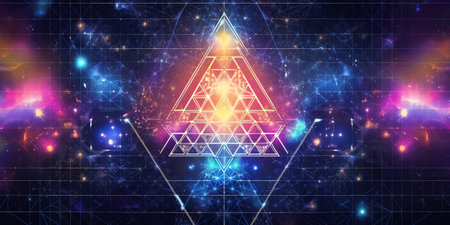 Mystical cosmic deity: spiritual hindu figure in ethereal geometric design.