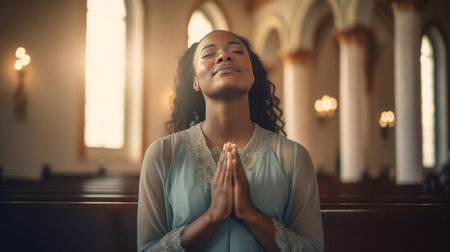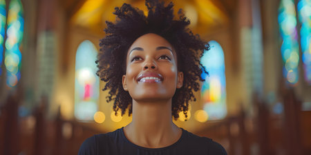 Inspiring Moments: A Faithful African American Woman Finding Strength in Church. Concept Empowerment, Faith, Church, African American, Strength
