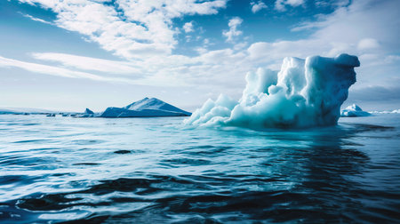 Iceberg floating in the serene ocean, climate change and environmental conservation concept, banner