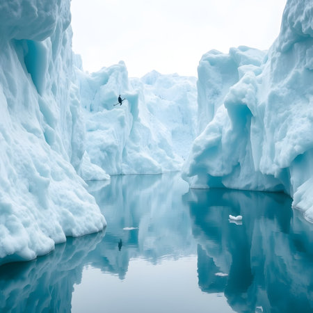 water disturbance caused by a large iceberg collapsing into the sea, created with generative ai