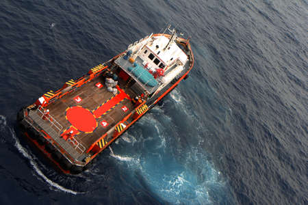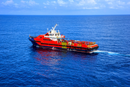supply boat in oilfield and cargo