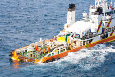 boatman working on deck supply boat, crews operation on installation boat, heavy job in offshore