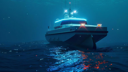 MODERN MOTORBOAT - The fast boat of the naval office is maneuvering in the seaport