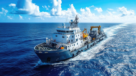 Offshore special purposes sea vessel in the Tyrrhenian sea waters near the Porto Ercole in the Province of Grosseto, Tuscany, Italy