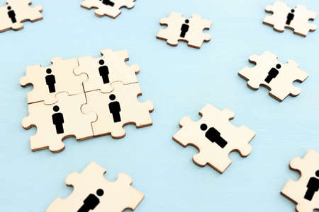 puzzles with candidate icons lined up. employee icon with management system. the concept of HR or employee management