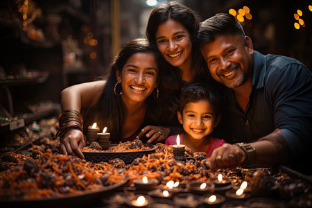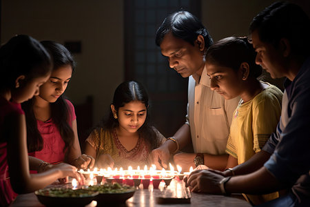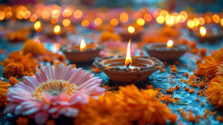 Diwali Festival in India. Homes and streets are adorned with dazzling displays of diyas oil lamps, creating a mesmerizing spectacle of flickering lights symbolize dispelling of darkness and ignorance.