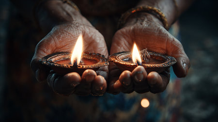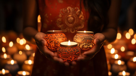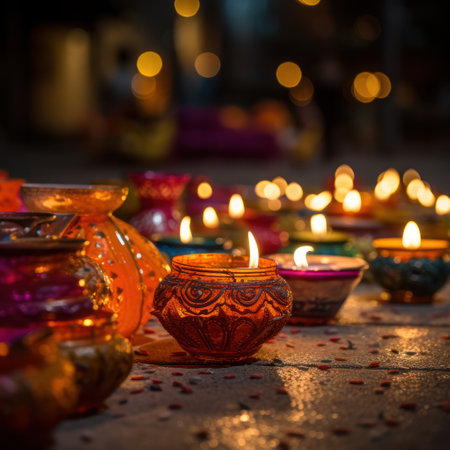 Discover the charm of elegant Diwali candles illuminated in a serene atmosphere, capturing the spirit of celebration with intricate designs and warm glow.