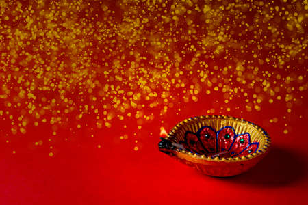 Diwali diya with blurry dark bokeh light background with copy space. Used selective focus.