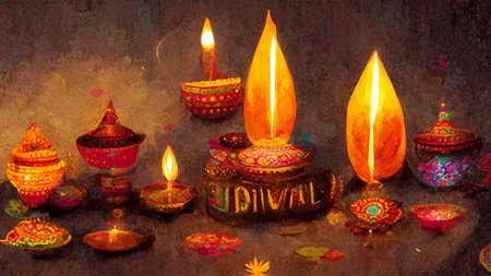 Beautiful Diwali diya lamps lit during Diwali celebration