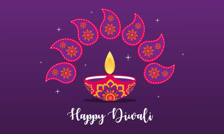 Happy Diwali vector illustration. Festive Diwali and Deepawali card. The Indian festival of lights on color background