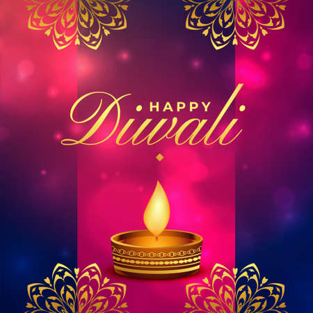happy diwali indian festival. diwali background with candles. Diwali lanterns realistic background with candles and blurred lights.