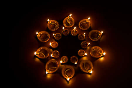 Beautiful diwali diya lamps lit during diwali celebration