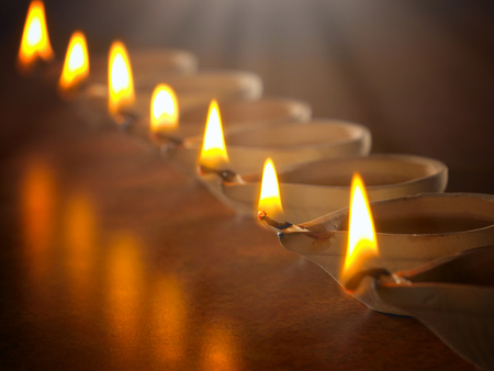 oil lamps lit on diwali festival