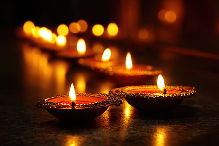 Beautiful Diwali diya lamps lit during Dipavali festival
