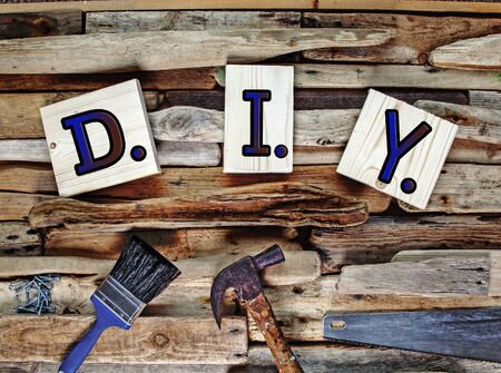 DIY do it yourself, text words typography written on wooden lettering, life and business motivational inspirational concept