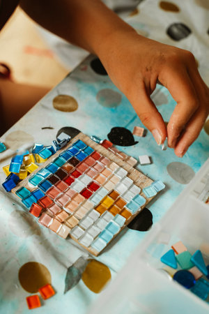 Child Creating a Colorful Mosaic Artwork