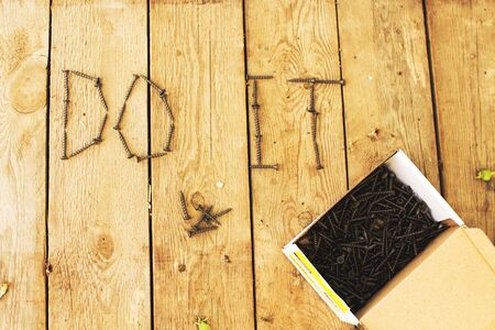 the inscription Do It on the wooden background of screws