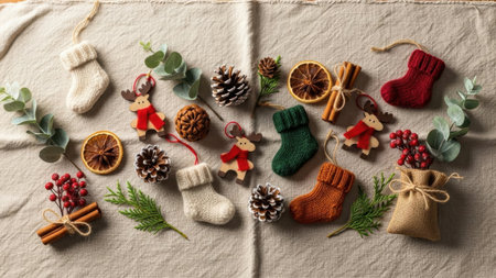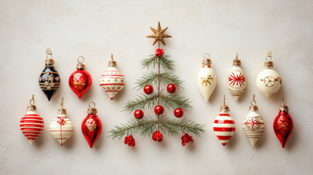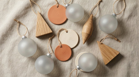 A flat lay arrangement of simple Scandinavian-style Christmas ornaments AI generated illustration
