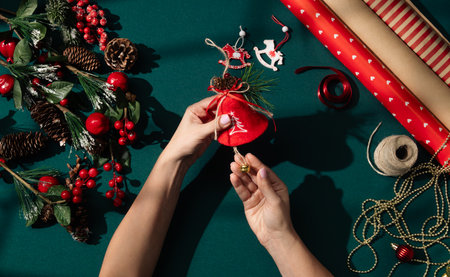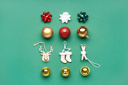 Festive holiday decorations arranged in a flat lay, ready for seasonal promotions.